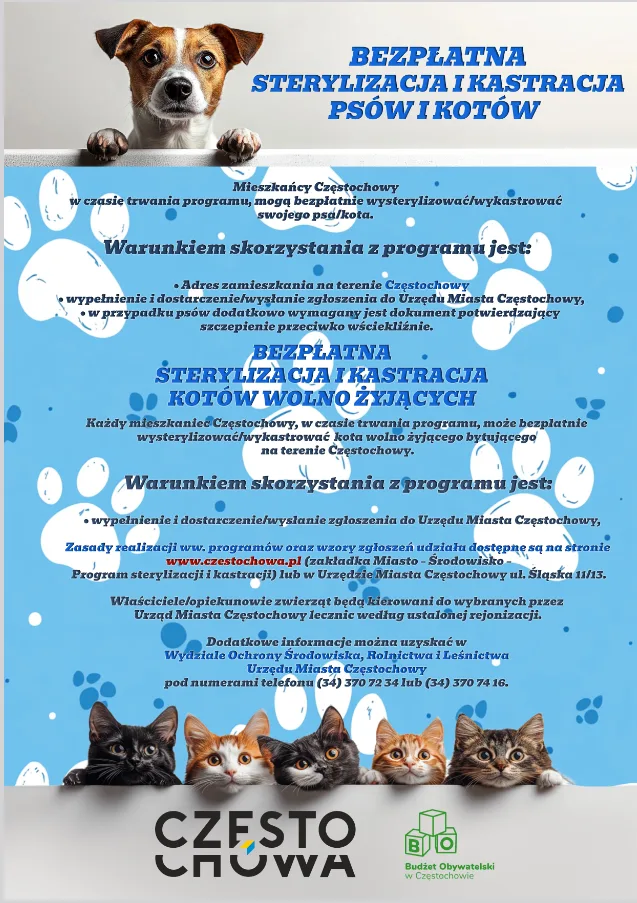 Z programu mogą skorzystać wyłącznie mieszkańcy Częstochowy. W przypadku zwierząt domowych właściciele powinni: