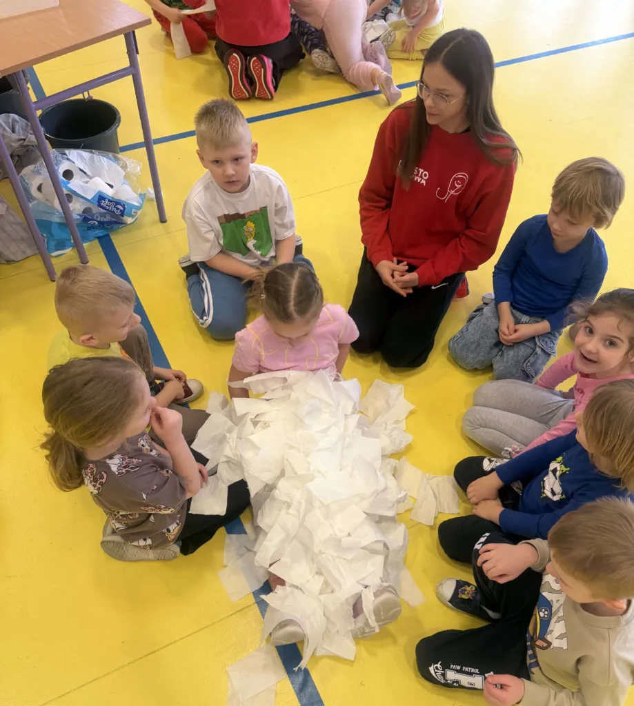 Na starcie wszyscy trafili do „Kropelkowa”, gdzie szybko wyszło na jaw, że woda to nie tylko coś do popijania obiadu, ale prawdziwe paliwo dla organizmu. Potem było „Ratunkowo” – tu dzieci ćwiczyły, jak zachować zimną krew i pomóc innym w trudnych sytuacjach. Emocji nie brakowało też na stacji „TurboRuch”, gdzie każdy mógł się wyskakać, sprawdzić swoją kondycję i przekonać się, że ruch naprawdę daje powera.